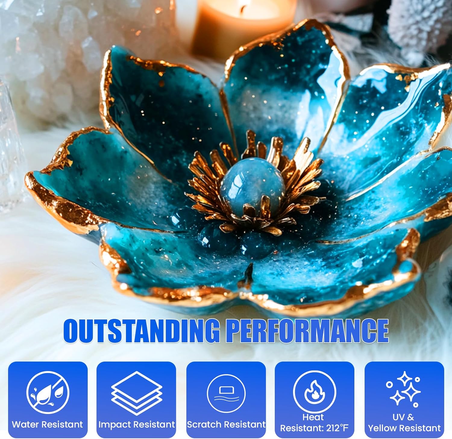 - 【Crystal Clear & High Gloss】ProKKUV epoxy resin is its crystal-clear finish. Once cured, the resin exhibits remarkable clarity, which is crucial for applications like jewelry making and art pieces. It can resist heat, scratch and keep clear without yellowing, protecting your beautiful artworks and colors for stable and long-lasting